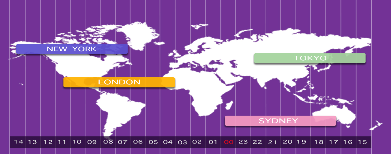 • In periods when market 'trading hours' overlap, liquidity tends to increase because more traders are participating in the FX market.